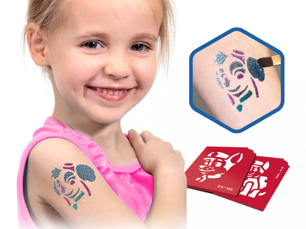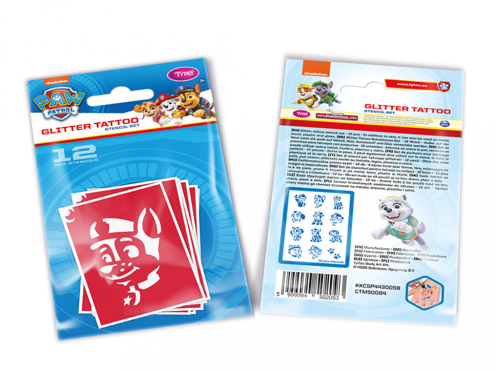 A csomagban található sablonok segítségével Mancs őrjáratos csillámtetoválás mintákat készíthetsz, melyeket egyéb testfestéshez is felhasználhatsz.