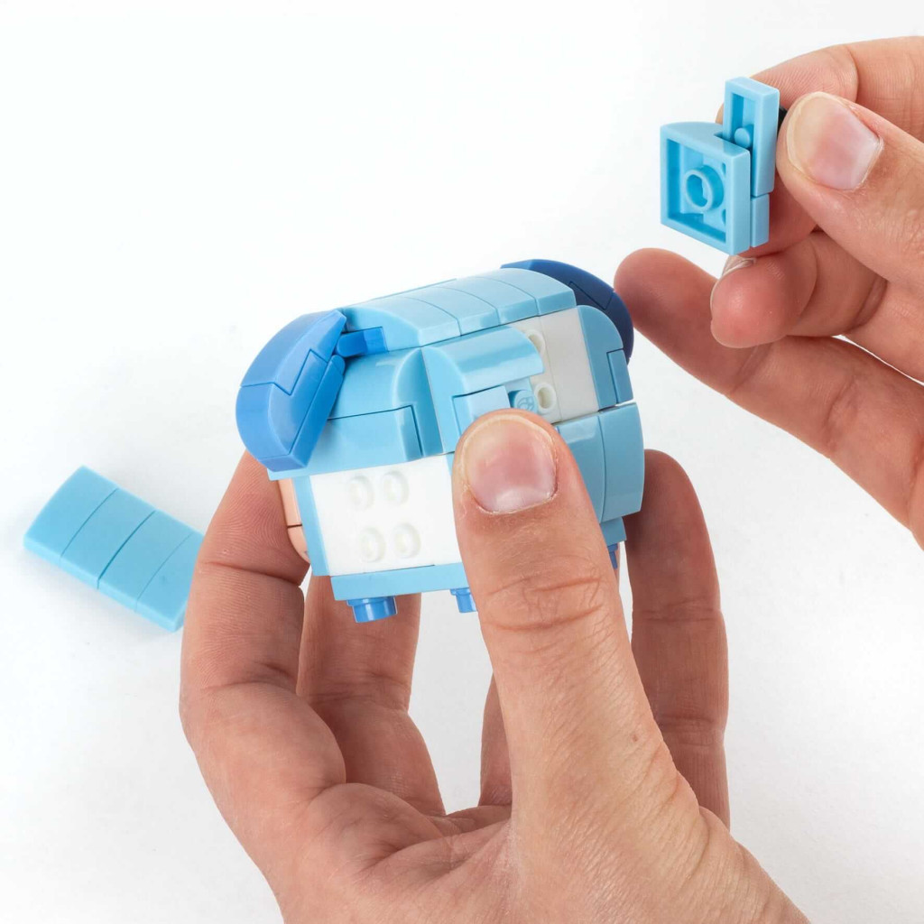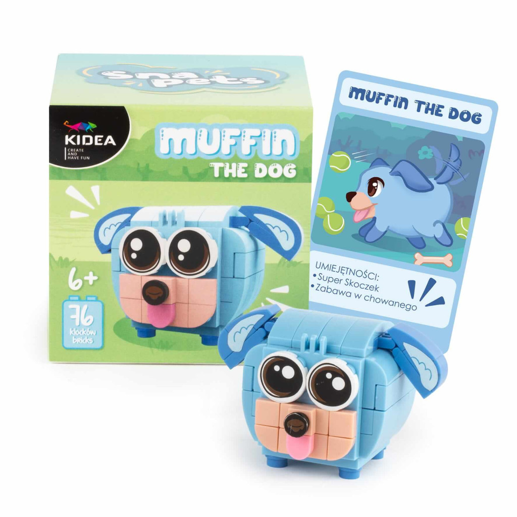 Építőkocka készlet, Muffin, a kutya Építsd meg ezt a cuki figurát építőkockákból! Gyűjtsd össze mindegyiket! Muffin egy vidám, hűséges kutya, aki imád bújocskázni és egyetlen ugrással átugorhat egy folyón vagy beugorhat egy faházba. A készlet körülbelül 100 kockát, építési útmutatót, díszítő matricákat és egy különleges QR kódot tartalmaz, amely egy digitális világba repít tele animációkkal, a figura történetével és egy letölthető háttérképpel. Minden készlet két gyűjthető kártyát tartalmaz, amelyet felhasználhatsz a játékban. Doboz mérete: 9x9x9cm