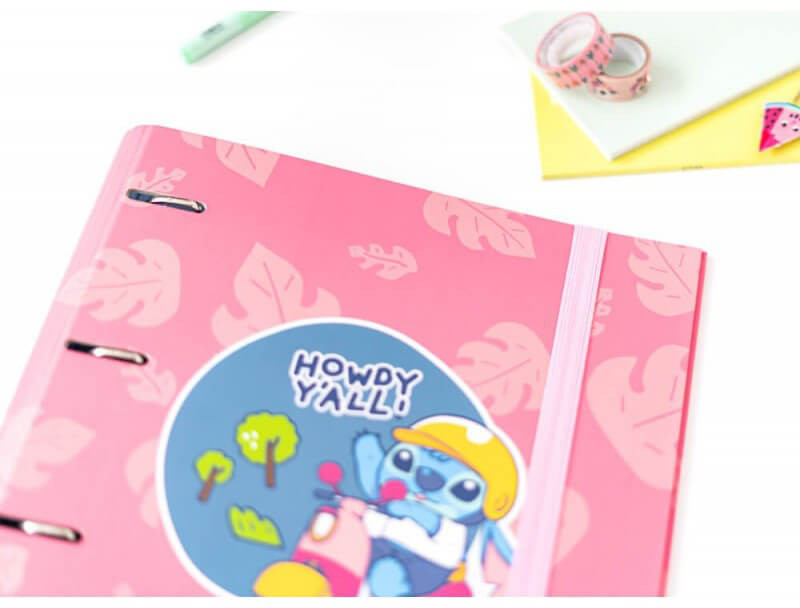 Stitch gyűrűskönyv A/4, 4 gyűrűs. Ebben a prémium minőségű gyűrűskönyvben tárolhatod sulis dolgaid, irodai papírjaid, de akár receptjeid is. 2 mm vastag kartonból készült, tartozék egy rugalmas szalag, amellyel könnyedén lezárhatod, ha magaddal akarod vinni. Mérete: 26x32cm. 4 gyűrűs