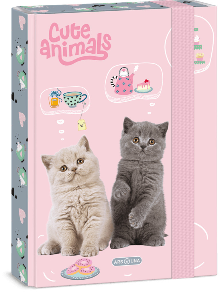 Tea Party, cicás füzetbox A/5, Ars Una. A/5 méretű füzetbox. Kemény, tartós kartonból, 4 cm-es gerinccel, fényes fóliával, 7 mm széles gumipánttal. Belseje egy színnel nyomott. Füzetek, iratok tárolására . Méret: 220mm x 160mm x 35mm