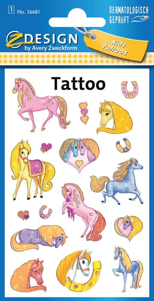 Tetoválás matrica szett, csillámos lovak 7,5x12cm. Avery