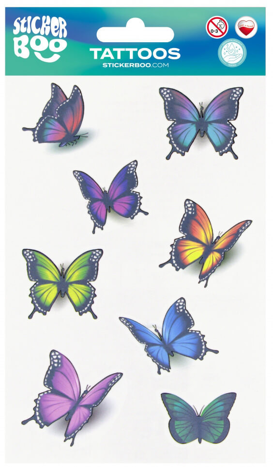 Tetoválás matrica szett, lepkék, pillangók 10x17,5cm, Sticker Boo