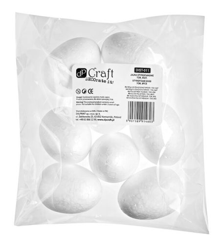 Tojások, hungarocell, 8 db/csomag, 7cm-es. Kiválóan alkalmas húsvéti alkotások elkészítéséhez, dekorálásához.