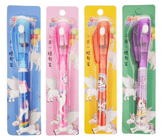 UV toll, unikornis mintájú, többféle változat. Titkoríráshoz. A tinta kizárólag az UV lámpa segítségével látható. Az ár egy darabra vonatkozik, nem biztos, hogy mindegyik van raktáron.