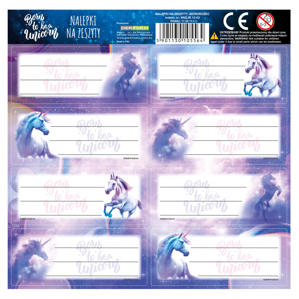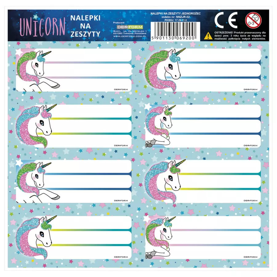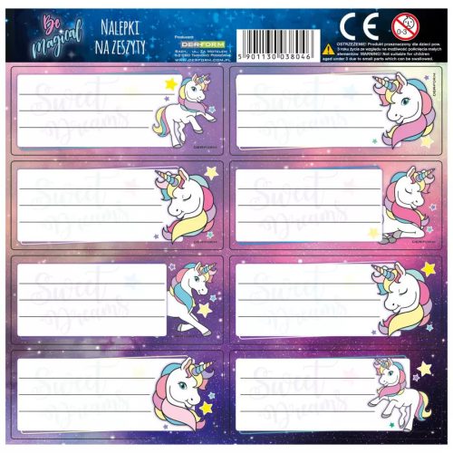 Unikornis füzetcímke 8db/ív, többféle. Egy ív mérete: 16x16cm.