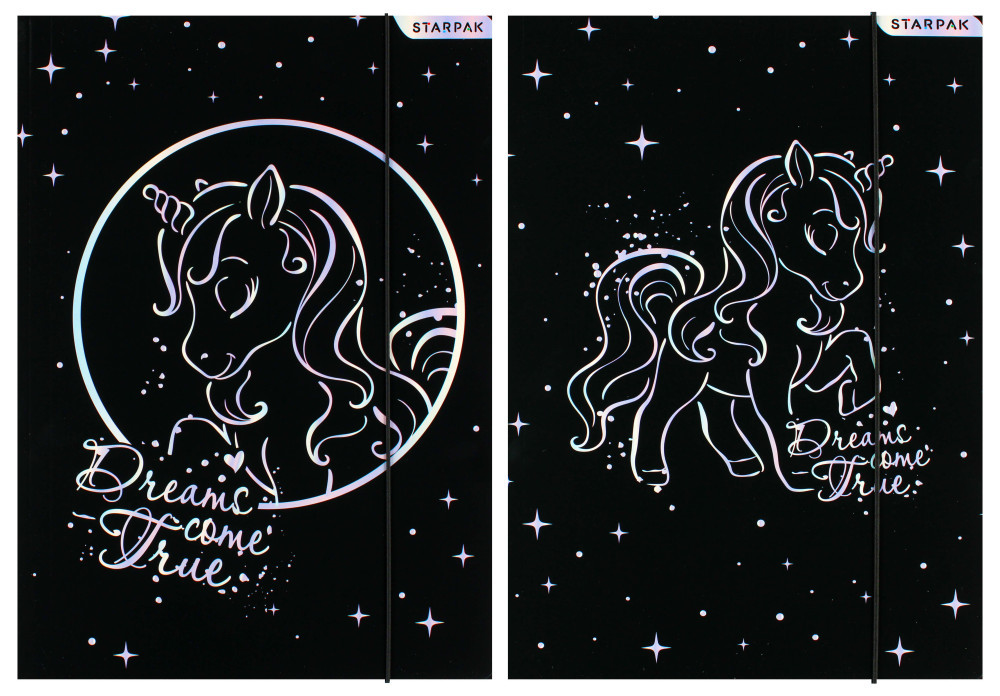 Unikornis gumis mappa A/4, fekete, kétféle, Starpak. Többféle változat, az ár 1 db-ra vonatkozik. Nem biztos, hogy a kiválasztott minta van raktáron.
