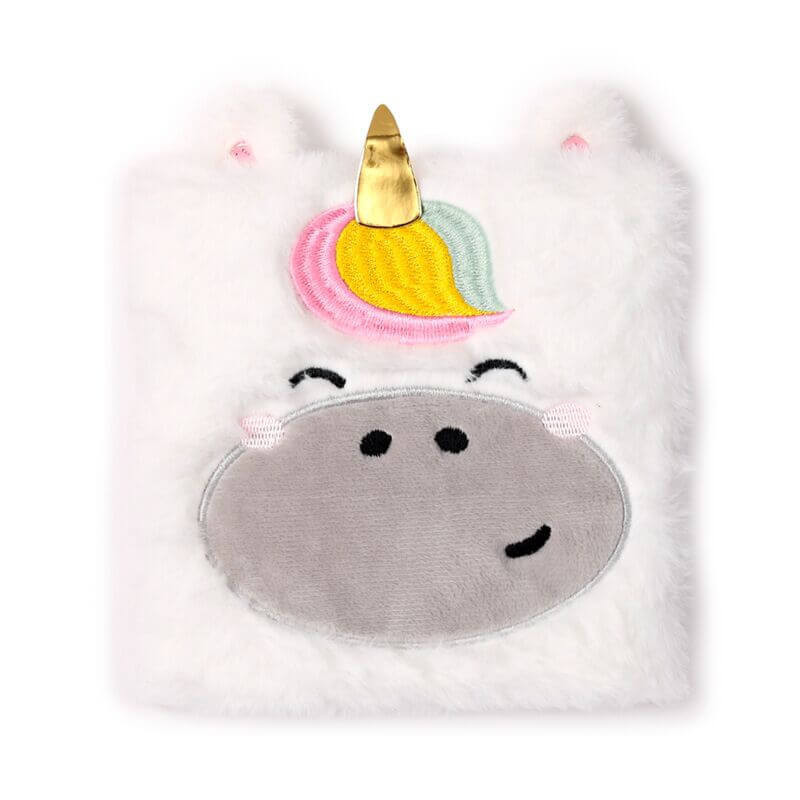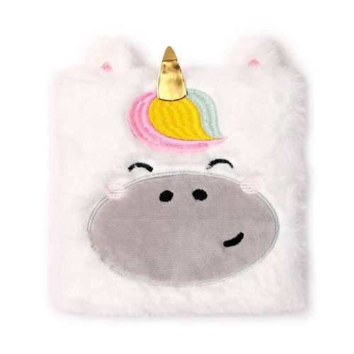 Unikornis napló, 17x15cm, plüss borítóval, vonalas