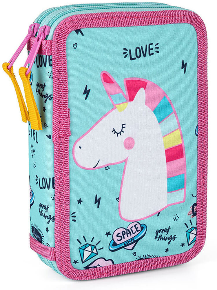 Unikornis tolltartó 2 emeletes, üres, Unicorn Power, világoskék