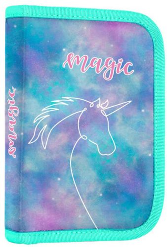 Unikornis tolltartó klapnis, üres, OXY GO 2026. Méret: 14x21x3,5cm. Üres tolltartó, 25 gumis hellyel.