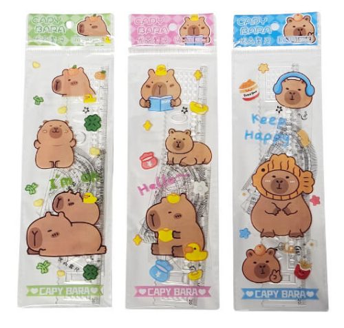 Vonalzókészlet, kicsi, műanyag, hajlítható, 4 db-os (egyenes 20cm, szögmérő, háromszög) többféle színű kapibarás csomagolásban. Nem biztos, hogy mindegyik van készleten.