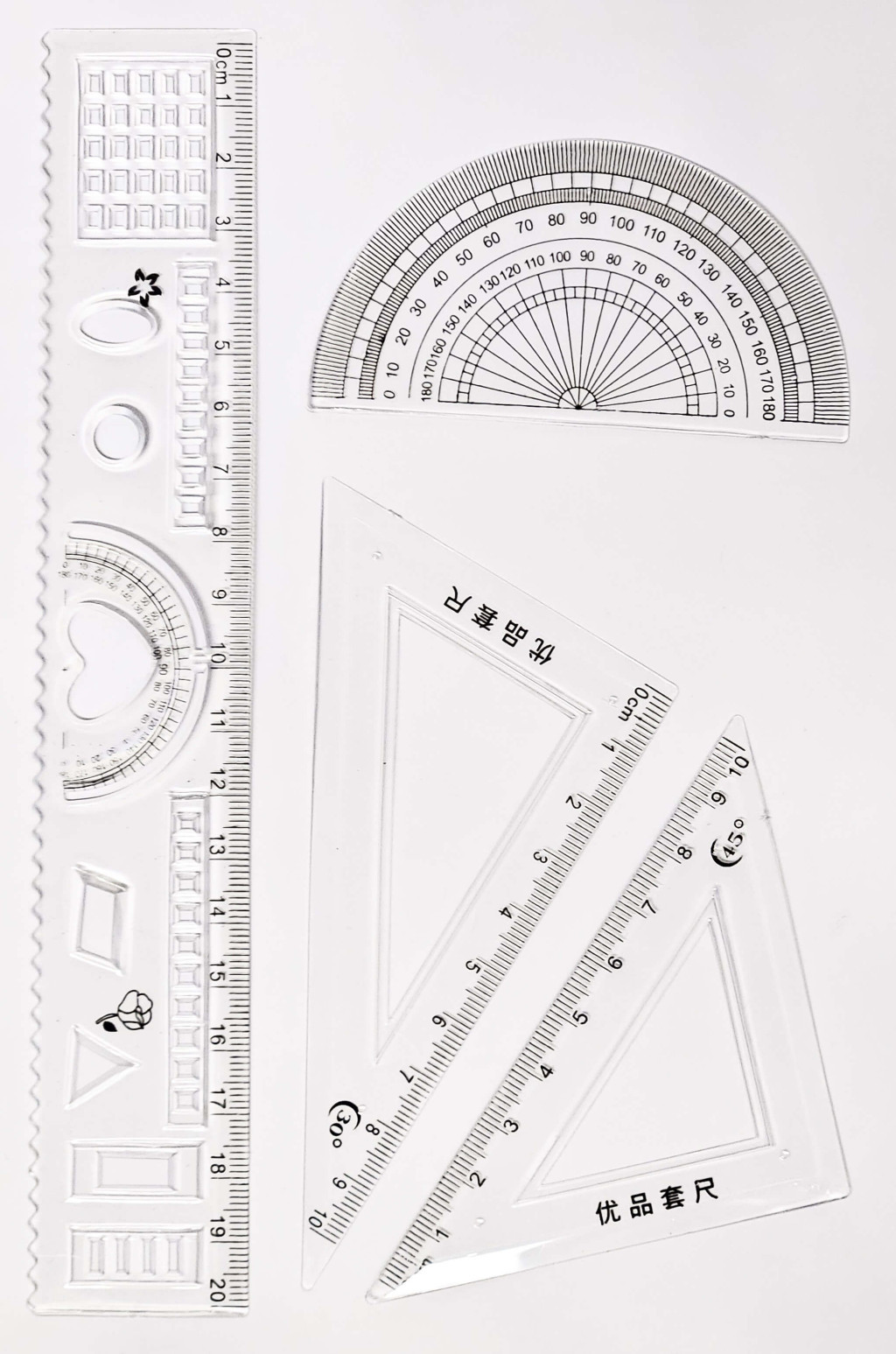 Vonalzókészlet, közepes, műanyag, 4 db-os, hajlítható, (egyenes 20cm, szögmérő, háromszög), kapibarás csomagolásban