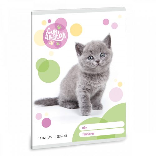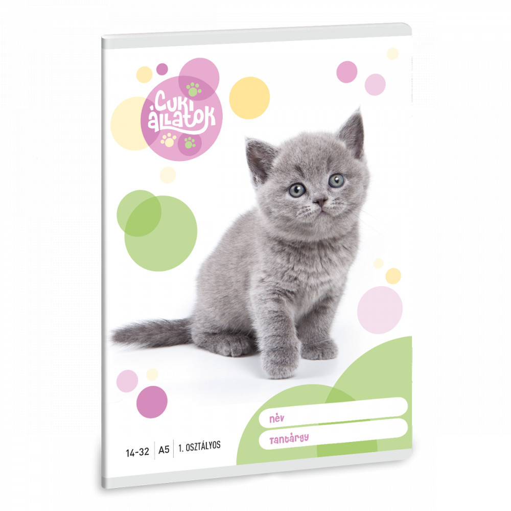 Cuki állatok tűzött füzet A/5, 32 lap vonalas 1.osztály (14-32), brit rövidszőrű macska