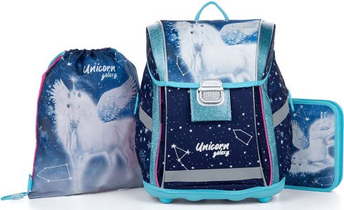 Pegazus csatos ergonómikus iskolatáska tolltartóval és tornazsákkal, Premium Light, kék.